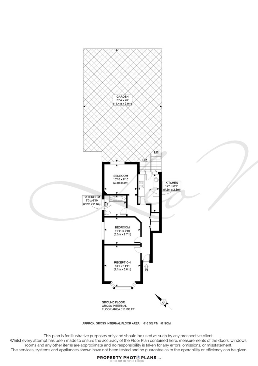 Internal floor area - Approx. gross internal floor area 616.00 SQ FT / 57.23 SQM