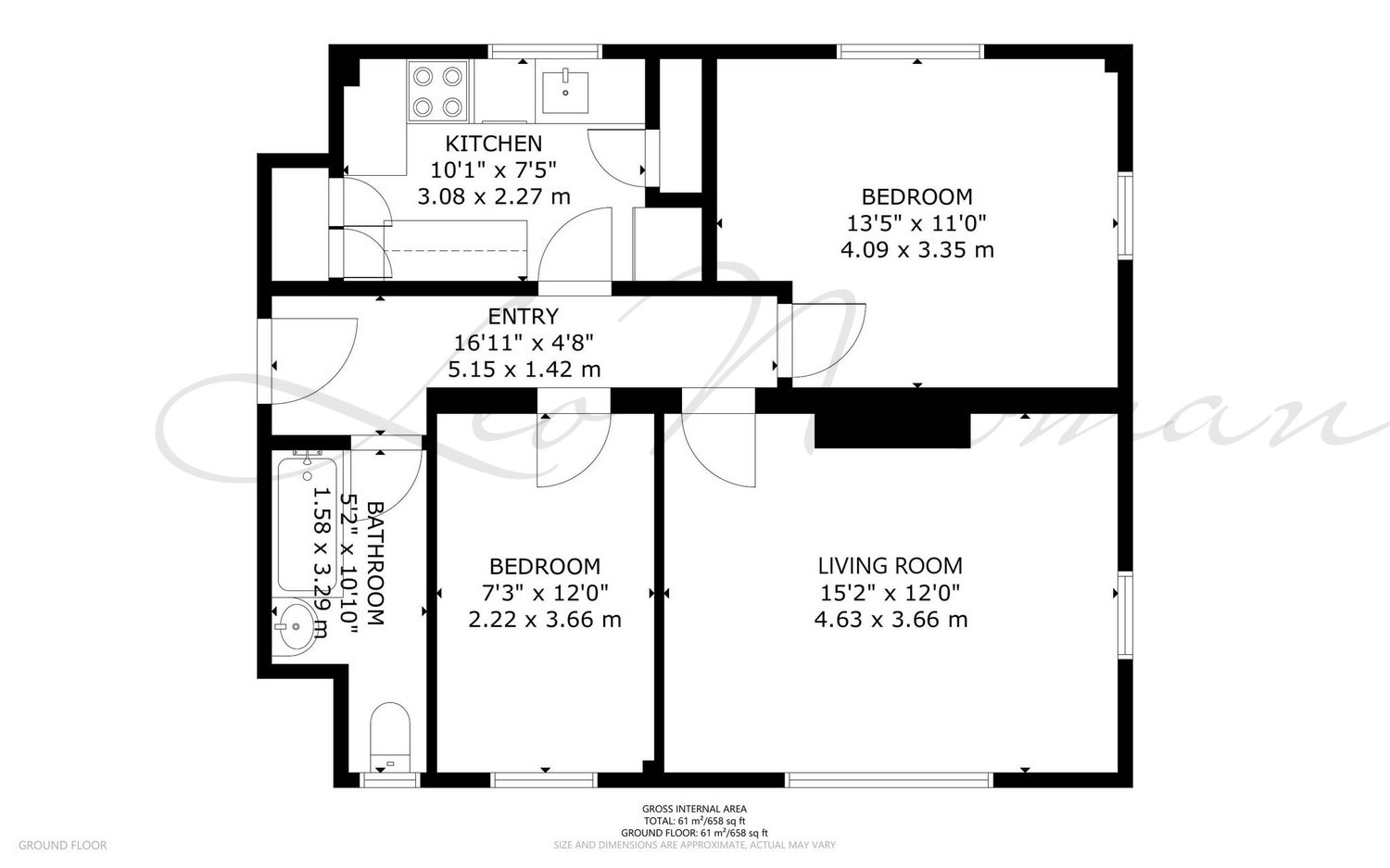 Internal floor area - Approx. gross internal floor area 658.00 SQ FT / 61.13 SQM