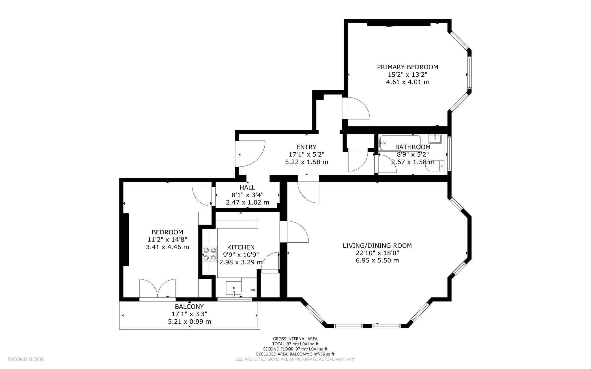 Internal floor area - Approx. gross internal floor area 1041.00 SQ FT / 96.71 SQM