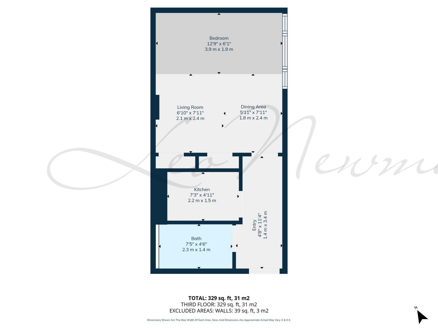 Internal floor area - Approx. gross internal floor area 329.00 SQ FT / 30.57 SQM