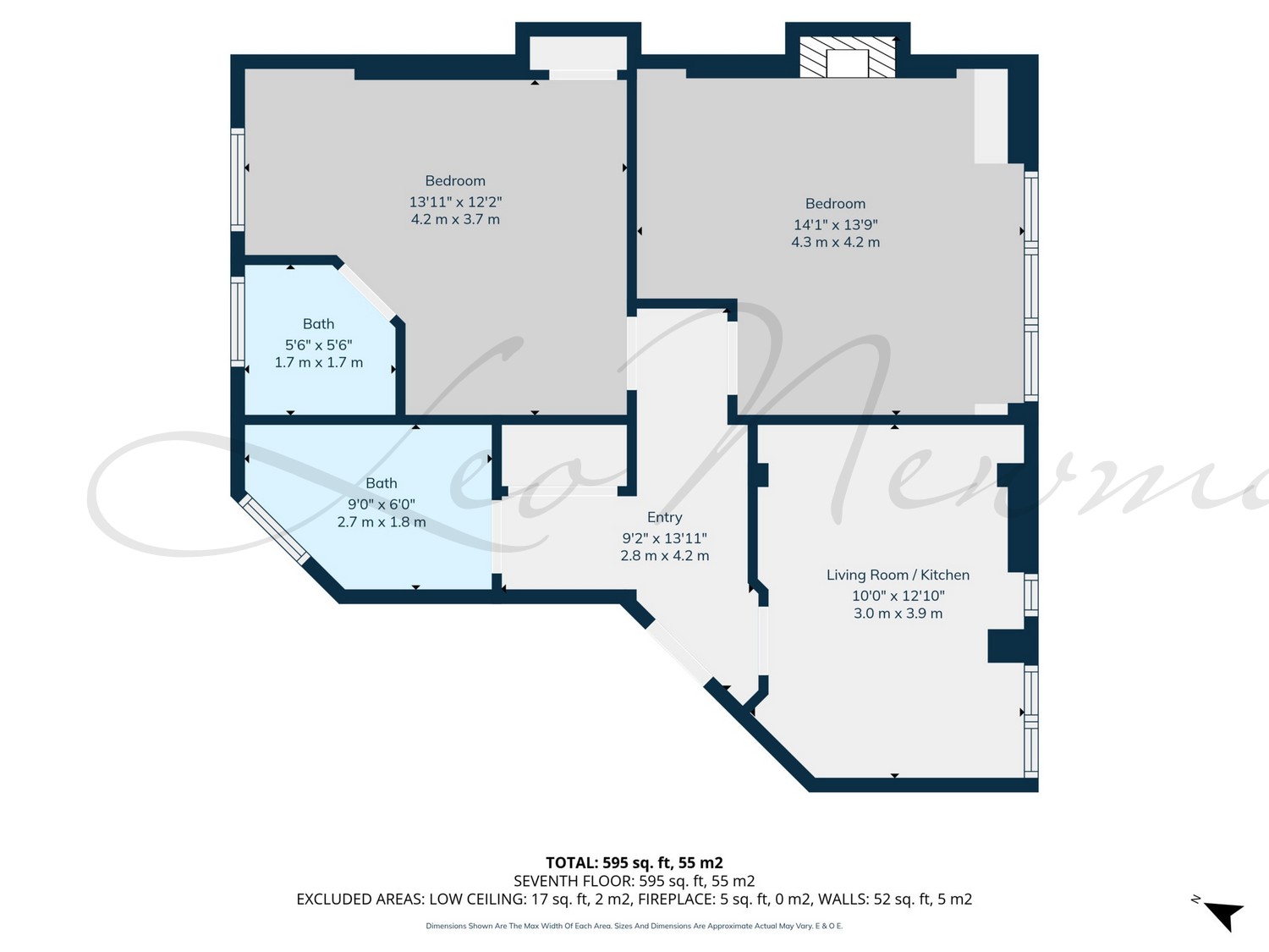 Internal floor area - Approx. gross internal floor area 585.00 SQ FT / 54.35 SQM