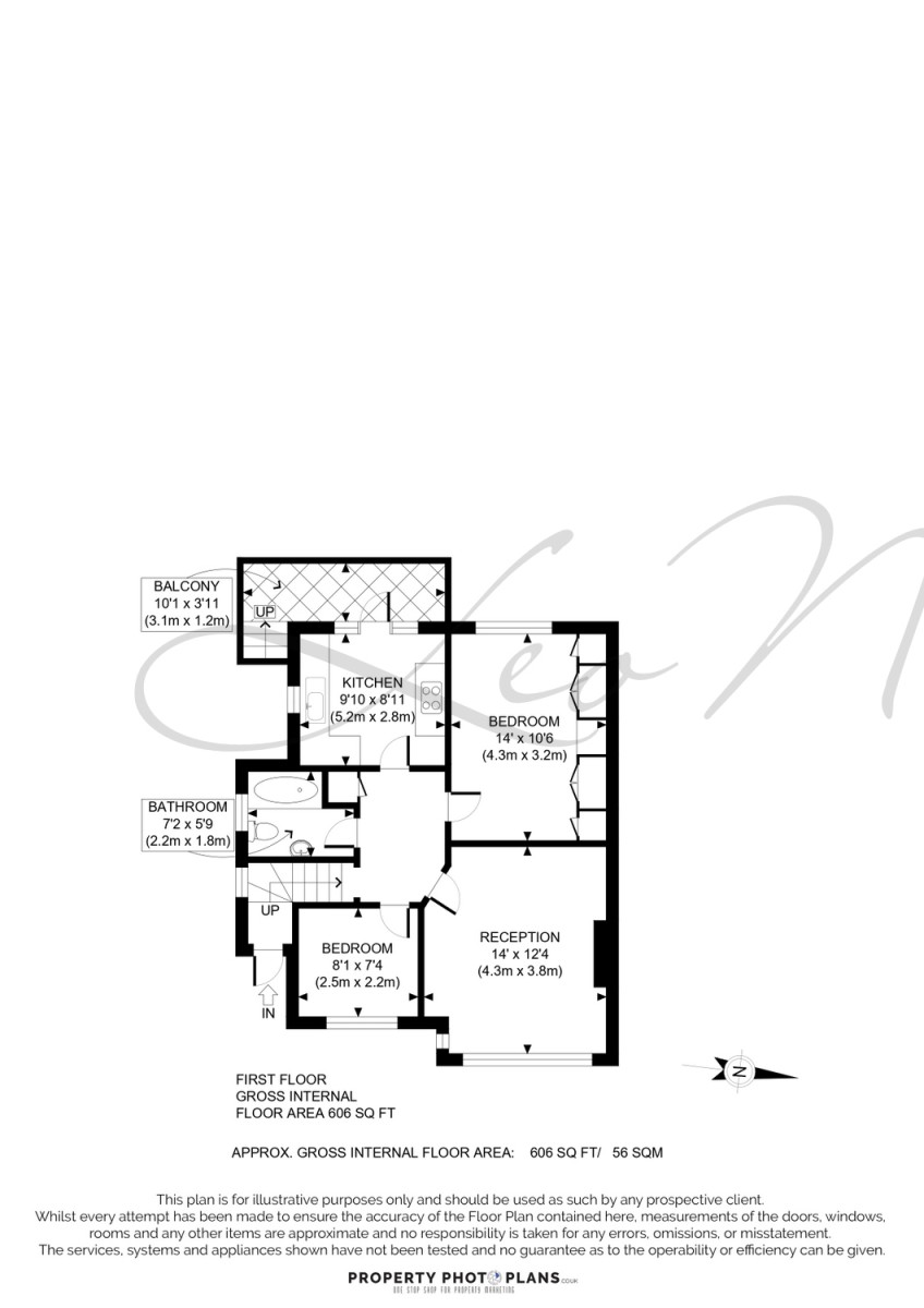 Internal floor area - Approx. gross internal floor area 606.00 SQ FT / 56.30 SQM